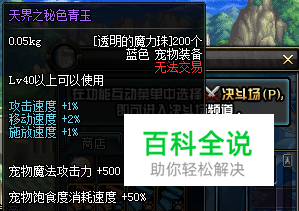 这里说的紫色宠物装备不是真正的紫色宠物装备,只是一种稀有宠物装备。因为宠物装备栏里只有红色、蓝色和绿色装备,而没有紫色装备。