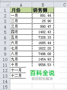 如下图,是一个简单的月销售额报表,我们以柱形图为例,先以它做为数据源生成一个柱形图表。