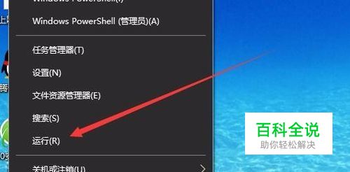 在Windows10桌面,右键点击桌面左下角的开始按钮,在弹出菜单中选择“运行”菜单项。