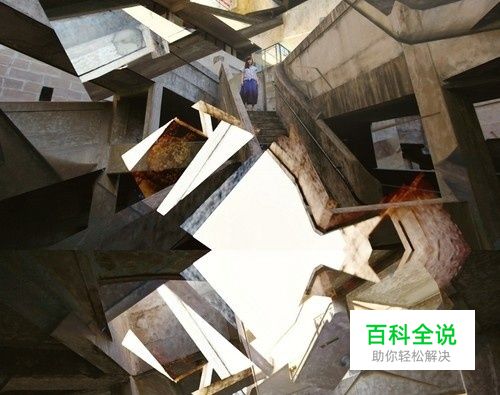 这种叠加方式人物尽量要小一些,目的是和景物融合,这种方式尤其适合结构复杂的建筑,建筑结构越复杂,盗梦空间般的奇特效果就越明显。将上海1933老厂坊的楼梯用照片拼接的方法,使得画面有着奇妙的破碎感,中间留白,凌乱中打造出建筑的异度空间。上方是一个女生站在楼梯上,下面是一男生,形成对应,使得看似凌乱的画面,有了一个平衡点。