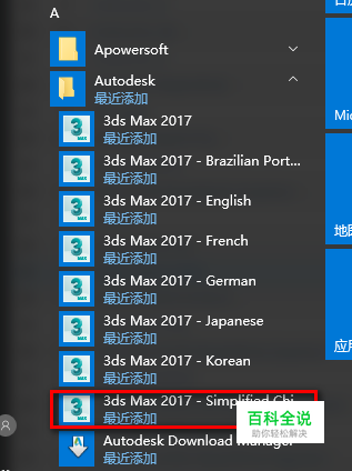 打开开始菜单,找到Autodesk的位置,选择简体中文,双击