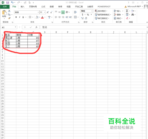 在新创建的表格下面输入数据,随便什么,数字,文字.... 。会看到当在表格下面的空白单元格里面输入数据并按ENTer键时,表格会自动把新输入的数据圈起来。