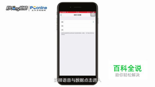 点击蜂窝移动数据选项,选择语音与数据,当4G网络延迟时,可以选择3G网络。