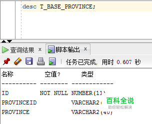 使用T_BASE_PROVINCE表作为测试演示使用,表字段如下 ID NUMBER(11,0) PROVINCEID VARCHAR2(6 BYTE) PROVINCE VARCHAR2(40 BYTE) 数据可以根据自己的需要,插入一定量的测试数据
