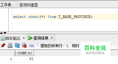 查询下总共数据量 select count(*) from T_BASE_PROVINCE; 在分页的时候,一般会显示总页数,需要先查询总数据量得到总页数,总页数=总量/每页显示记录数