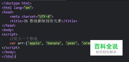 定义一个数组, 示例代码: var arr=['apple', 'banana', 'pear', 'orange'];