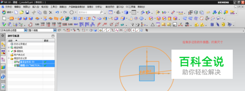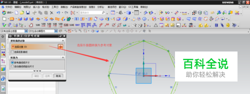 接着转换至参考对象,选择多边形的外接圆转换成参考线,如图所示。最后完成草图多边形的绘制。