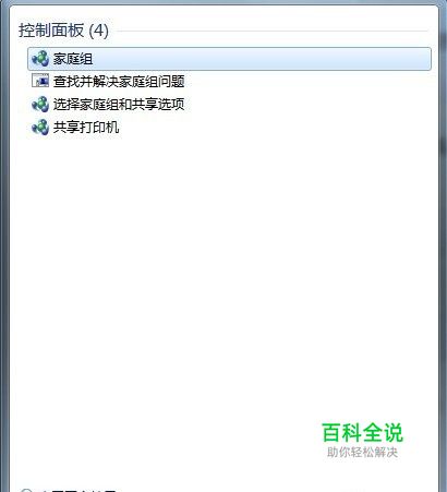 在开始搜索框中键入“家庭组”,按回车打开家庭组窗口