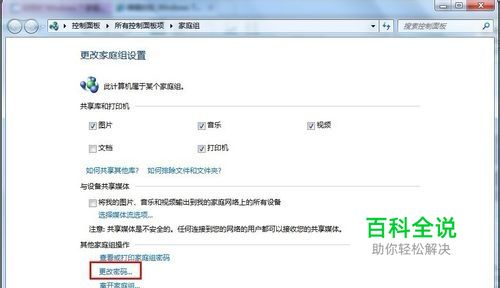 在创建家庭组时,系统会自动为我们创建一个安全密码,当然我们也可以修改成自己想要的密码。
