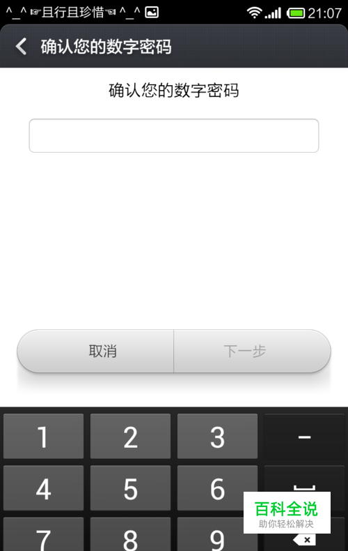 然后“数字密码”里设置自己想要的密码{最好输入自己不容易忘记的密码,要不然忘了就不容易解锁了},在点“下一步”,在输入一遍上一步的密码,点确定就ok了。