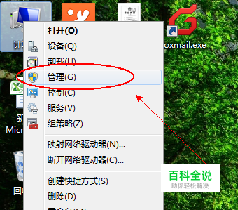 在弹出的下拉菜单选择一项“管理”,单击鼠标左键打开管理菜单