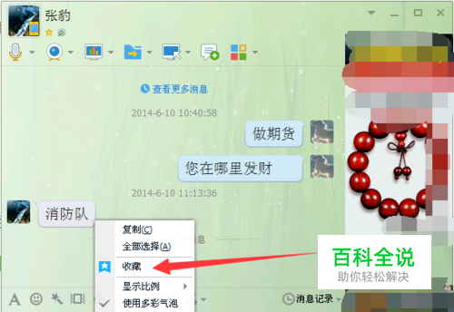 在聊天窗口,右键点击您要收藏的内容,选择收藏。