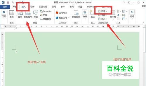 打开word文档,点击工具栏的“插入选项”,找到其中的“页眉”项,如下图所示。
