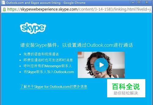 安装好插件按F5刷新一下此界面,就会提示你愿意合并Skype和Micrsosft账户,以便在OUTLOOK.COM中查看SKPYE联系人吗?如果有点击【我有SKYPE账户】如果没有就点击【没有,我是SKYPE新用户】