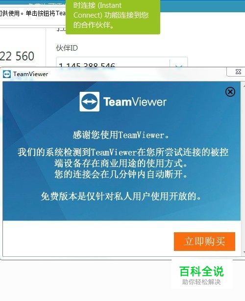 我们系统检测到TeamViever在您所尝试连接的被控端存在商业用途的使用方式,您的链接会在几分钟内自动断开,免费版本是仅针对私人用户使用开放的