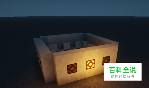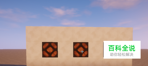 建造灯墙 如图1所示,先造一堵装有3个红石灯的灯墙。随后用4面灯墙围起一个正方形,如图2所示。注意这个正方形存在四个凹角,不是完整的正方形。