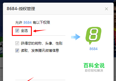 以8684公交为例,点击“8684”后面的授权管理,弹出下面的窗口,“全选”默认是没有打勾的,这里给打上勾,点击左下角的“取消全部授权”