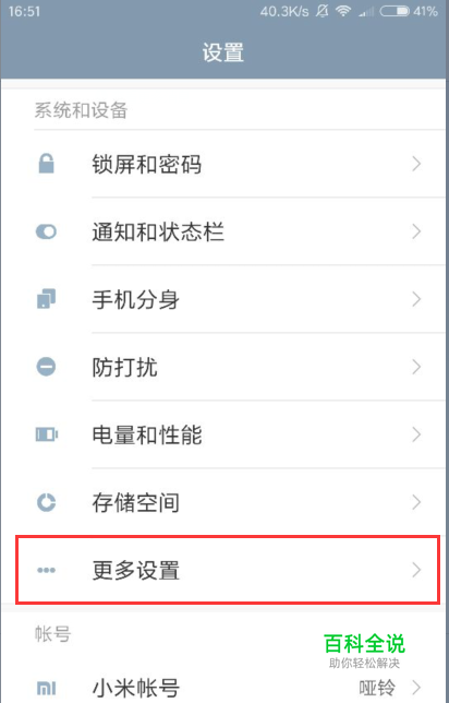 点击返回上一级页面,在系统和设备里找到【更多设置】,点击进入。