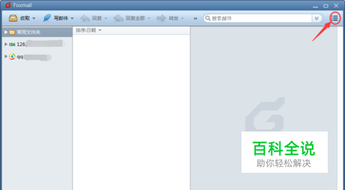 当我们进入Foxmail的主界面的时候,可以看到,在右上角有一个三条线的标记,这个按钮控制着所有Foxmail功能选项,鼠标左键单击。