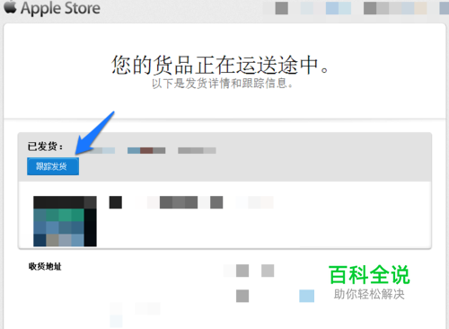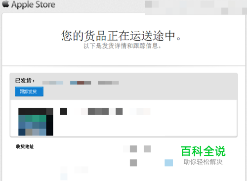 然后就会看到自己当前的订单状态了,这里可以看到是 “已发货”状态。点击 “跟踪发货”按钮查看货运状态,如图所示