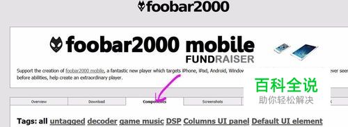 进入Foobar2000的官方网站,选择图示箭头所示的Components,可以看到很多的加载项。官方网站是全英文显示,大家看图示操作就可以!