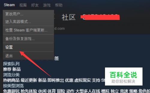 然后我们点击steam左上角弹出显示菜单,在弹出的二级菜单里我们点击设置。