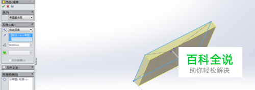 退出草图,点击拉伸凸台,所选轮廓为矩形,方向为另一条构造线,此时的拉伸凸台和2D草图的拉伸凸台是一样的。随后编辑草图,捕捉到作为方向构造线的角度尺寸,均改为60°。