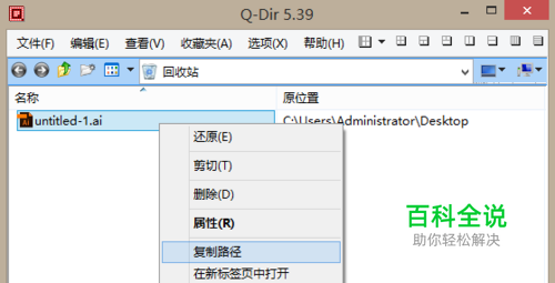 打开 Q-dir,进入回收站,右键要删的文件,复制路径