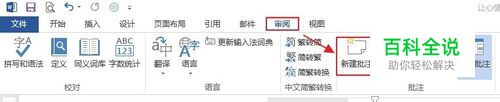 在“审阅”选项卡,“批注”组单击“新建批注”。