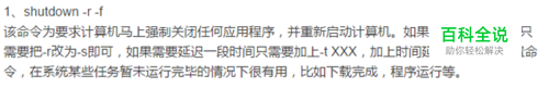 下图是对“shutdown -r -f”这个命令的具体解释。如下图。