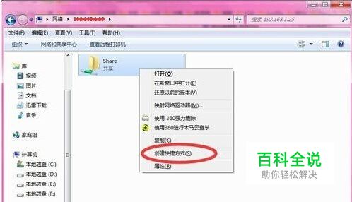 找到要用的文件夹,创建快捷方式即可在自己电脑上看到.