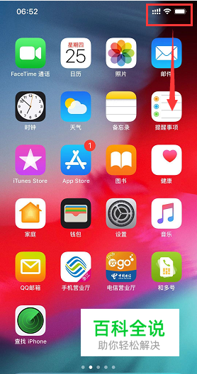 目前iPhone xs max开启数据流量的方法也有好几种,首先从电池图标一侧下滑屏幕,如下图所示