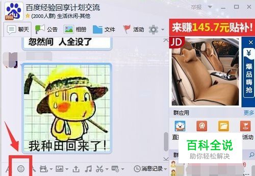 我们在电脑上打开qq的聊天工具,随便打开一个对话窗口,点击下方的“表情”按钮,如图所示。