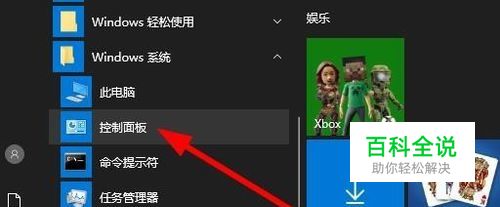 在Windows10系统桌面,依次点击“开始/Windows系统/控制面板”菜单项。