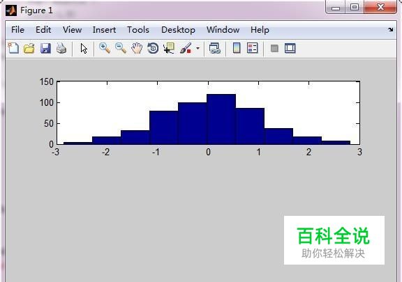 接着我们先绘制一个最简单的直方图,使用命令:subplot(3,1,1); hist(x);关于subplot的用法我们在上一篇文章中有介绍,hist(x)就是用直方图表示x,效果如图所示: