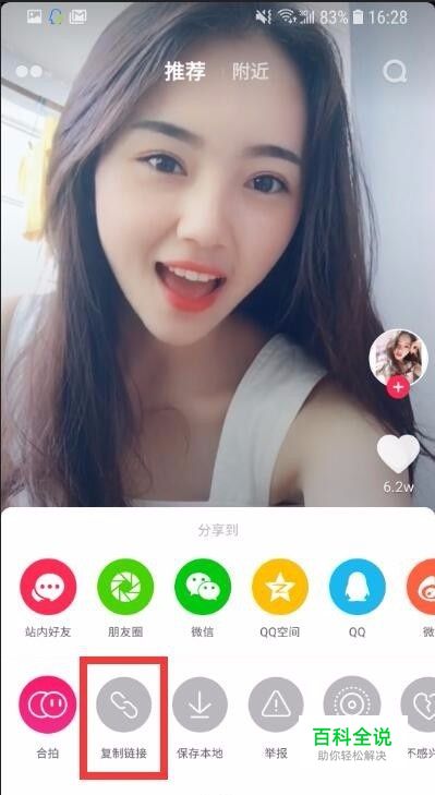 首先,在抖音、微视、火山小视频等app上选择自己喜欢的视频, 复制链接,如下图: