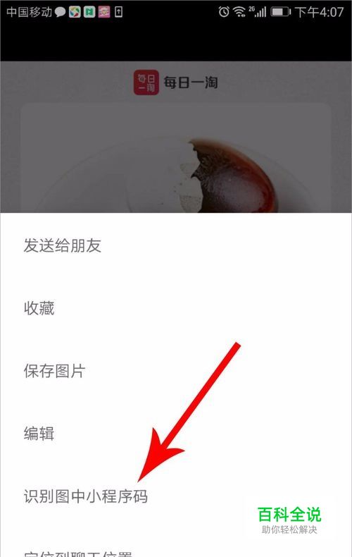 您的微信好友看到您的商品推广信息后,点击其中带有文字的图片,然后长按图片后点击“识别图中小程序码”,这样她就会打开此商品的详情页了,购买之后,系统会自动为您派送相应的积分。 至此,我们就完成了每日一淘赚积分的所有操作。