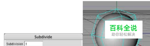 在我们把多边形调整成头的形状之前,需要细分这个多边形。在多边形编辑模式下,使用"细分块面"功能,在对话框的细分数中输入1,并勾选HyperNURBS细分,现在这个立方体就成了更加光滑的球形。