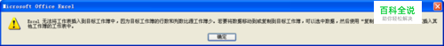 “EXCEL无法将工作表插入到目标工作簿中,因为目标工作簿的行数和列数比源工作簿少。若要将数据移动到或复制到目标工作簿,可以选中数据,然后使用“复制”和“粘贴”命令将其插入其他工作簿的工作表中”。