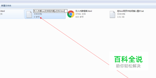 1.如图所示,我们新建一个记事本,并将记事本的名字改为“引入外部css文件 和外部js文件.html”,并回车键确定,以使文件转化为浏览器可以打开的html 网页文件。
