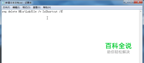 方法一:新建一个记事本在然后输入reg delete HKcr\Lnkfile /v IsShortcut /f