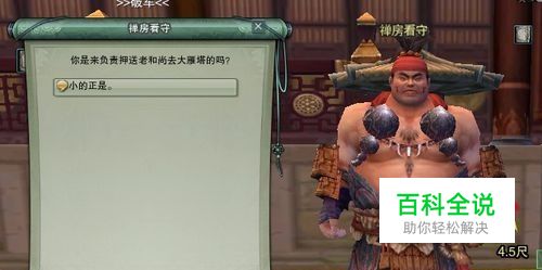 传送到大报恩寺后,任务开始地点在地图左侧的禅房。和禅房看守说话开启任务。