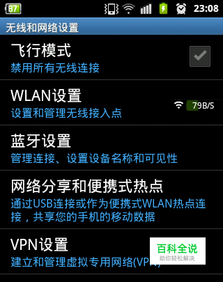 在“设置”中打开“无线和网络”选项,再进入WLAN设置。