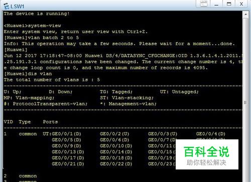 创建 vlan <SW1> system-view //进入系统模式 [SW1] vlan batch 2 to 5 //批量新建 vlan 2 到 5