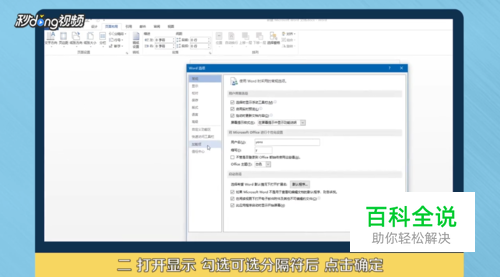 打开“显示”,勾选“可选分隔符”后点击“确定”,在文档中选中位置。