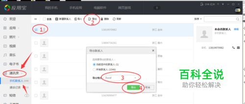 点击通信录,导出一个电话号码到桌面,格式是Excel