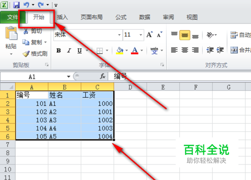 先选择好套用表格格式的区域和数据,然后切换到“开始”菜单。
