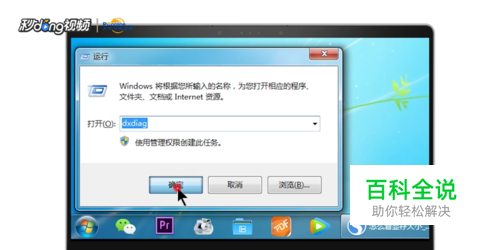 方法一:同时按下电脑键盘的WIN键(窗口键)和R键,在跳出的运行窗口输入dxdiag,点击确定
