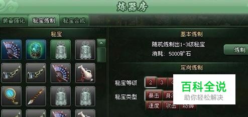 秘宝系统主要分为秘宝炼制和合成两部分 炼器房20级后可炼制秘宝 基本炼制:消耗一定矿石炼制随机获得一个1-3级秘宝 定向炼制:消耗相应的材料炼制出指定的秘宝 PS:武者20级后可穿戴秘宝