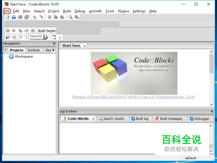进入CodeBlocks主页点击左上角【file】选项(文档的意思)。